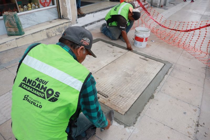Aunado a estos trabajos, este martes, el Ayuntamiento a través de la Dirección de Distrito Centro reparó los registros eléctricos que se ubican sobre la banqueta sur de la calle Ignacio Aldama.
