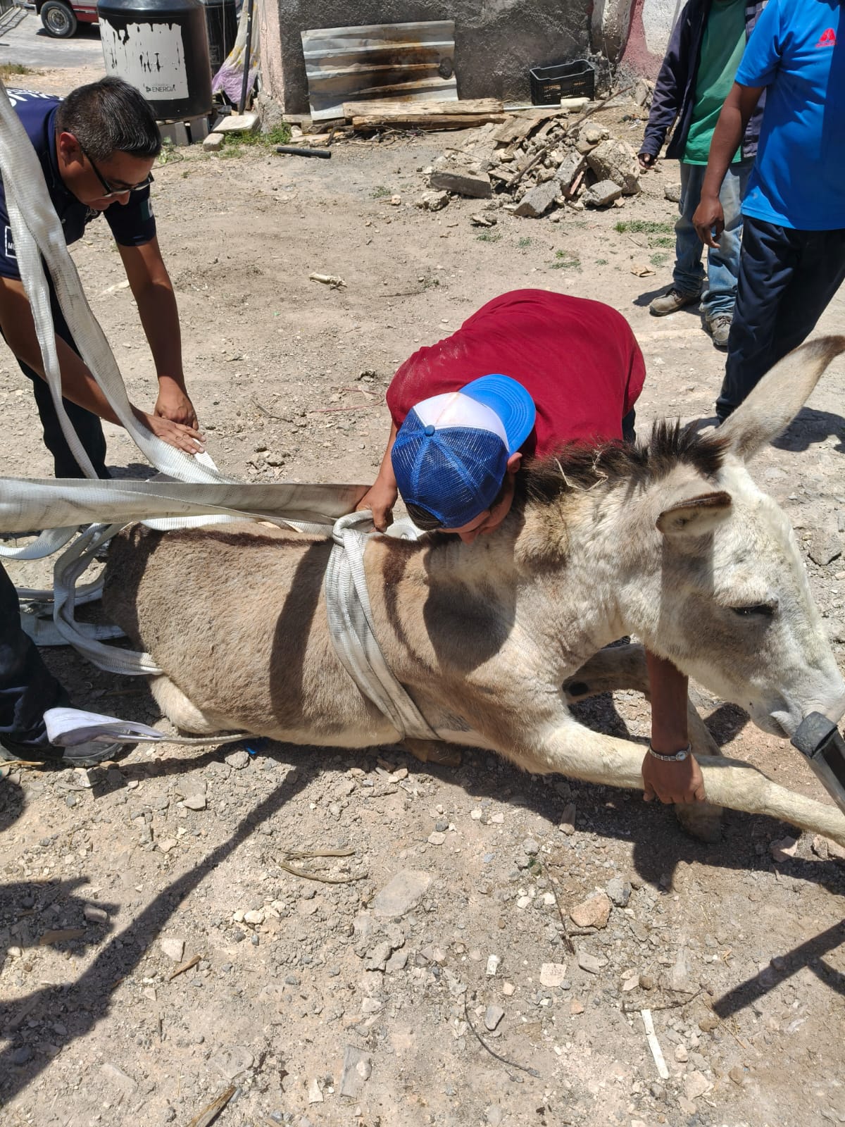 El reporte se atendió de manera oportuna tras localizar a un burrito que había caído en una fosa sanitaria, por lo que de inmediato se llevaron a cabo maniobras de rescate mediante el uso de equipo especializado y trabajo coordinado con la comunidad.