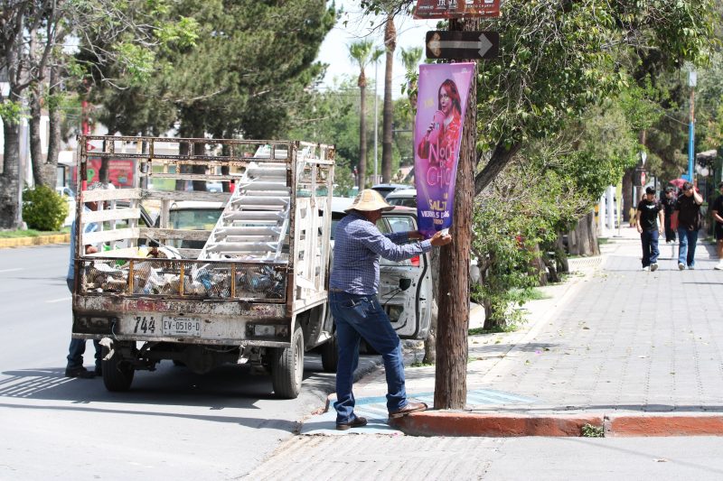 Saltillo, Coahuila de Zaragoza; 17 de abril de 2026.- El Gobierno Municipal, encabezado por el alcalde Javier Díaz González, realizó una intensa jornada de trabajo para el retiro de publicidad irregular colocada en la vía pública, postes y mobiliario urbano a lo largo del bulevar Venustiano Carranza, en ambos sentidos de circulación.