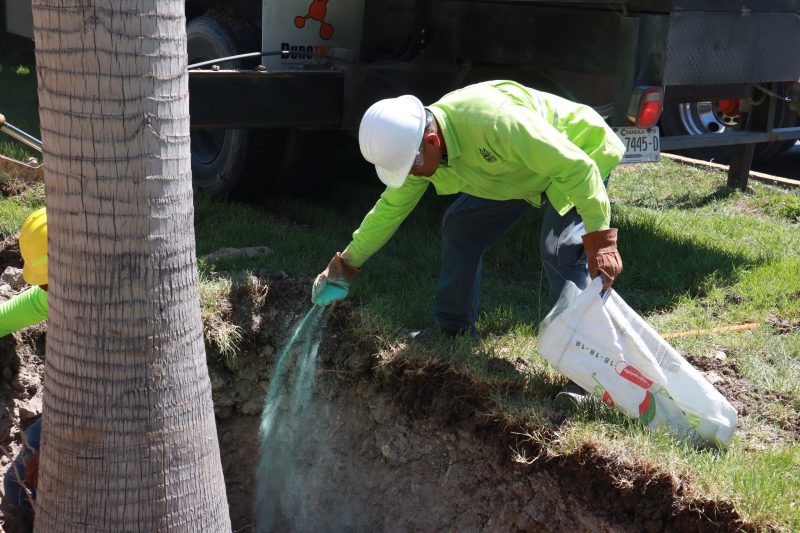 Saltillo, Coahuila de Zaragoza, 06 de agosto de 2025.- Por instrucciones del alcalde Javier Díaz González, este miércoles fueron reubicadas 7 palmas que se encontraban en el distribuidor vial El Sarape y que presentaban dificultades para su crecimiento y desarrollo.