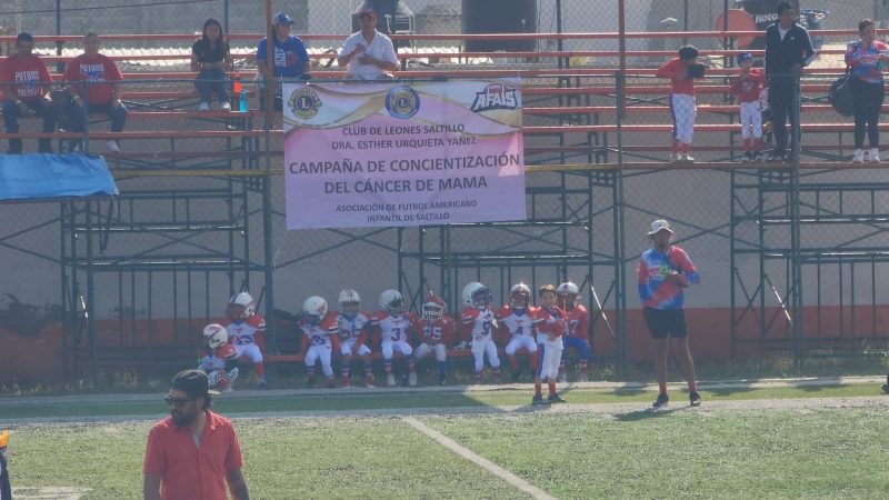 Saltillo, Coahuila.– En el marco del mes de sensibilización sobre el cáncer de mama, integrantes del Club Rotario de Saltillo, en coordinación con la AFAIS, realizaron una emotiva campaña de concientización este fin de semana en el estadio Jackie Heredia. Durante la jornada, colocaron moños rosas a padres de familia y asistentes como símbolo de apoyo a la lucha contra esta enfermedad.