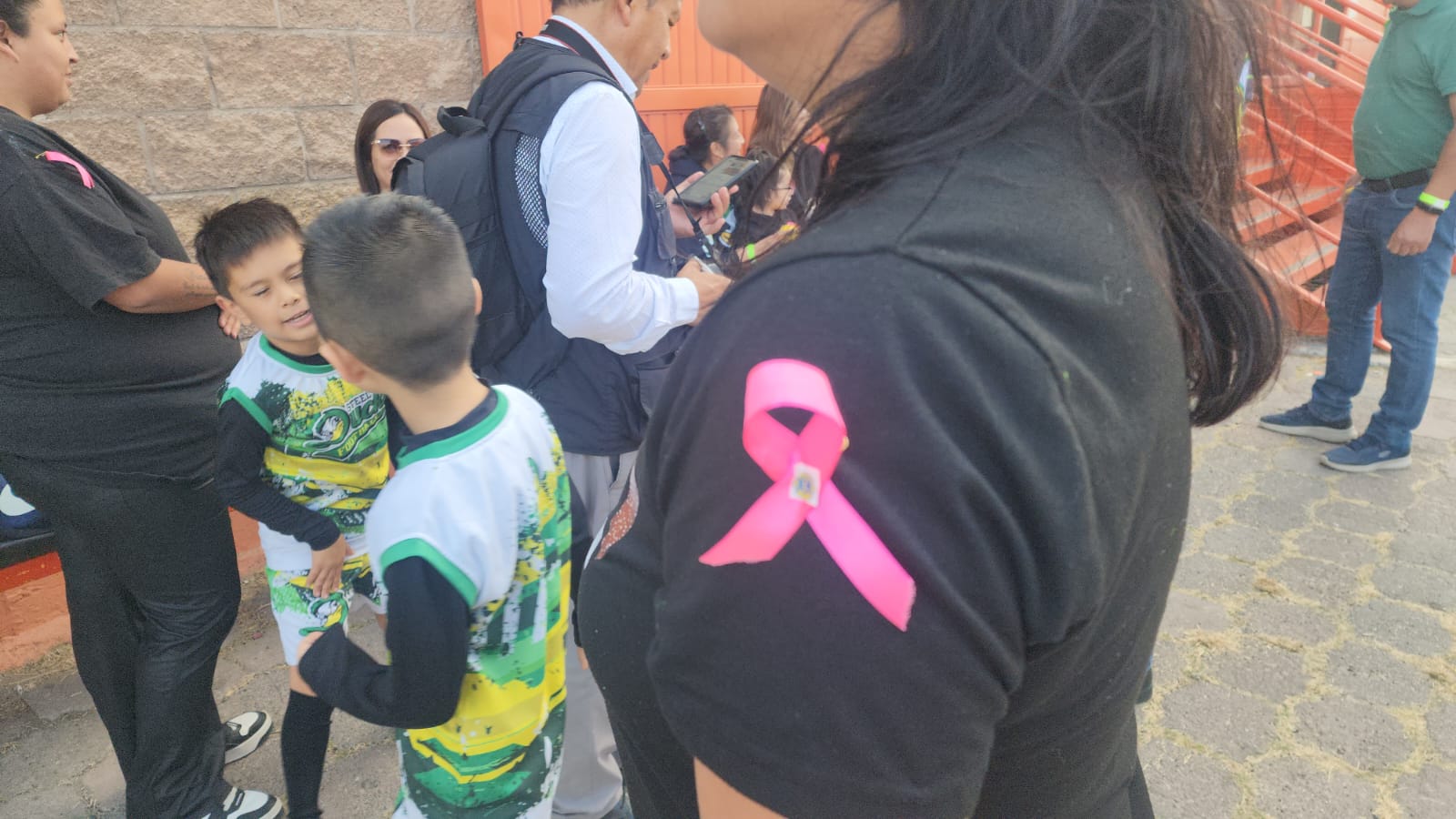 Saltillo, Coahuila.– En el marco del mes de sensibilización sobre el cáncer de mama, integrantes del Club Rotario de Saltillo, en coordinación con la AFAIS, realizaron una emotiva campaña de concientización este fin de semana en el estadio Jackie Heredia. Durante la jornada, colocaron moños rosas a padres de familia y asistentes como símbolo de apoyo a la lucha contra esta enfermedad.