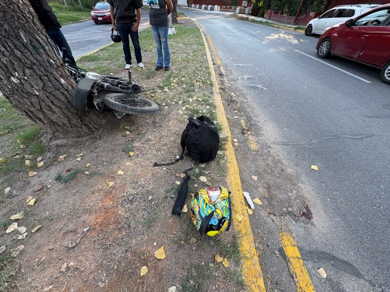 Antonio Alejandro «N» resultó con herida de consideración luego de impactar su motocicleta en contra de un árbol.