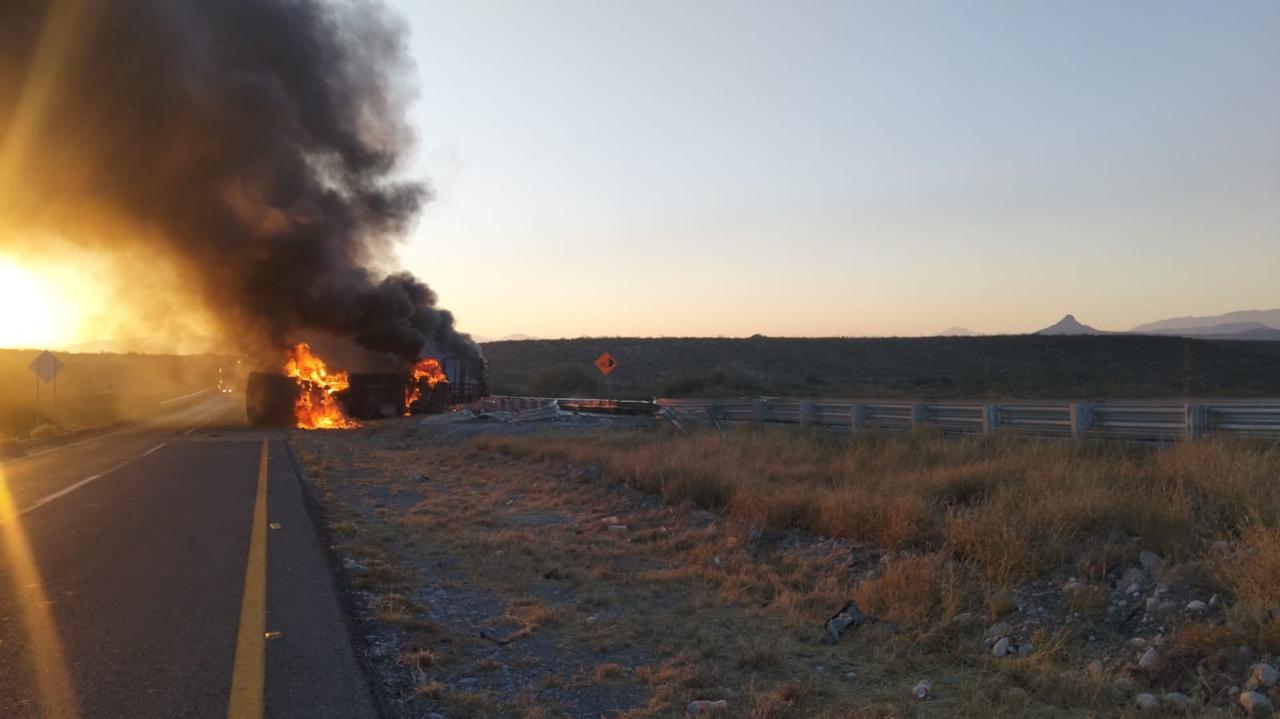 La mañana de este miércoles, dos tractocamiones chocaron y se incendiaron en el km 19 de la autopista Saltillo–Torreón, entre Plan de Ayala y El Porvenir.