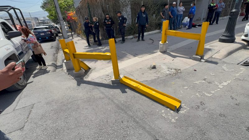 Tras el choque, el auto fue proyectado contra muros metálicos, derribándolos.