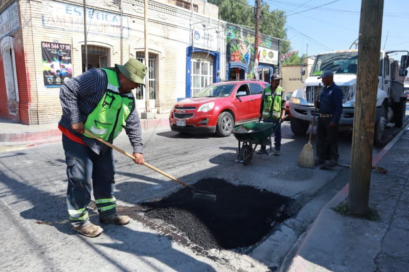 De manera paralela, cuadrillas de “Aquí Andamos” atendieron el llamado de la población para reparar los baches existentes en calles del Distrito Centro, a través del Chat Bot “Saltillo Fácil”, al número 844-160-08-08.