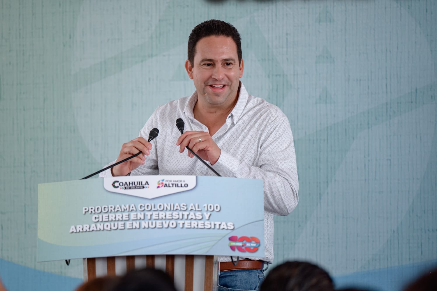 Saltillo, Coahuila de Zaragoza; 4 de agosto de 2025.- El alcalde Javier Díaz González encabezó el cierre del programa Colonias al 100 en las colonias Teresitas y Nuevo Teresitas, en el que 14 dependencias municipales trabajaron de manera simultánea para mejorar las vialidades, seguridad y espacios públicos del sector.