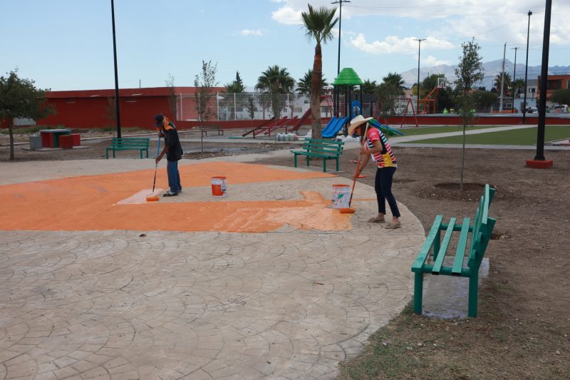 De esta manera, se pinta y se rehabilita el kiosco de este lugar, además de instalar pasto sintético y juegos infantiles de alta calidad.