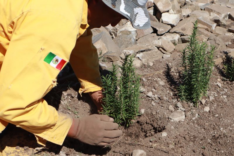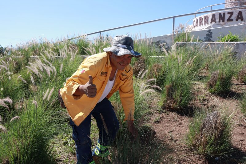 Mientras que al norte de Saltillo, personal de la Dirección de Medio Ambiente y Desarrollo Sustentable reforestan las áreas verdes de la Rotonda a Venustiano Carranza, con plantas de ornato de la especie Romero.