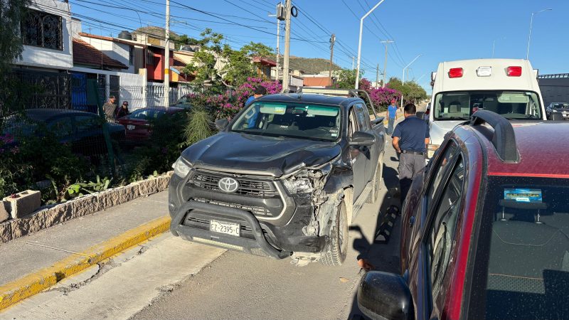 El conductor de una camioneta Chevrolet le quitó el derecho de paso a una camioneta Toyota que circulaba con preferencia, lo que provocó un fuerte impacto entre ambas unidades. Tras el choque, la unidad responsable volcó y terminó con los neumáticos hacia arriba.