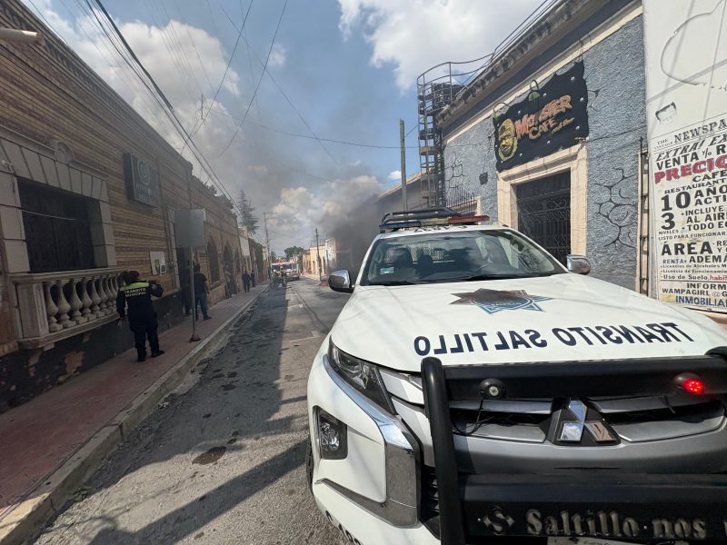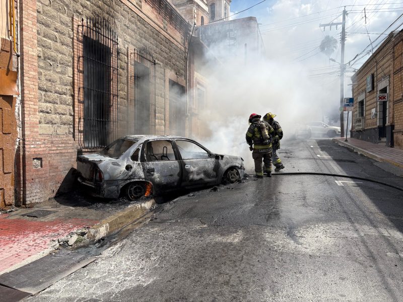 Un vehículo fue consumido por las llamas la tarde de este viernes en pleno Centro de Saltillo, luego de que se registrara un incendio aparentemente provocado por un cortocircuito en el área del motor.